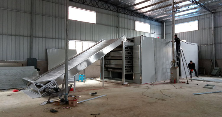 烘烤時間一般控制在8小時至12小時以上。上面的是移動式的紅薯烘干工藝,對于產量較低的紅薯烘干項目,可使用間歇批次生產的固定烘干房,但是物料的烘干原則亦可大體參照上述的設定。